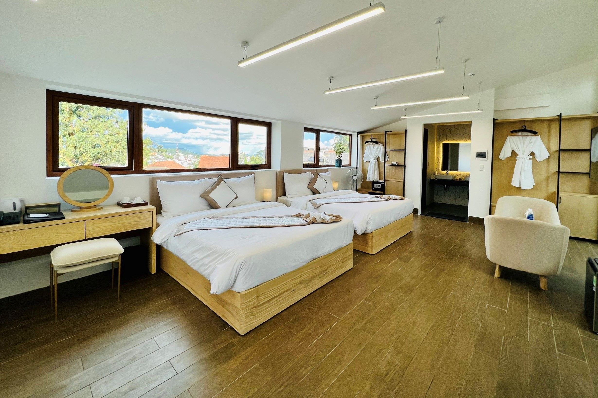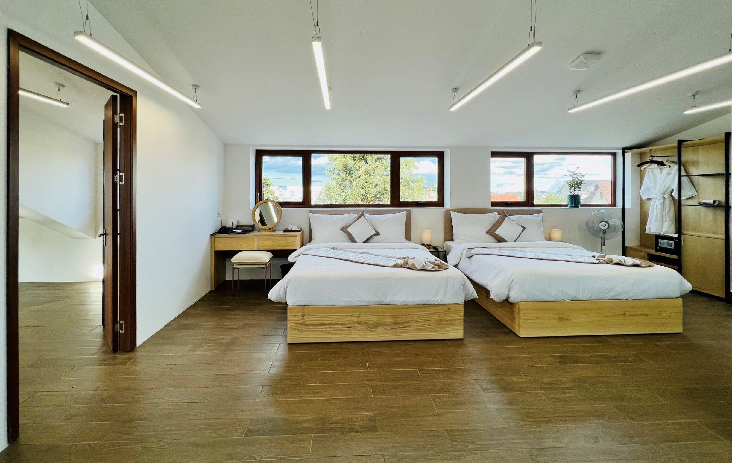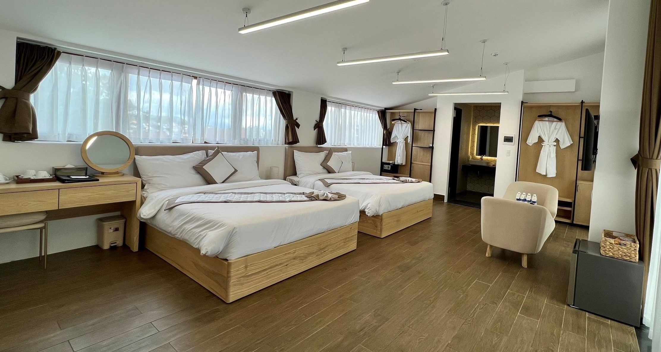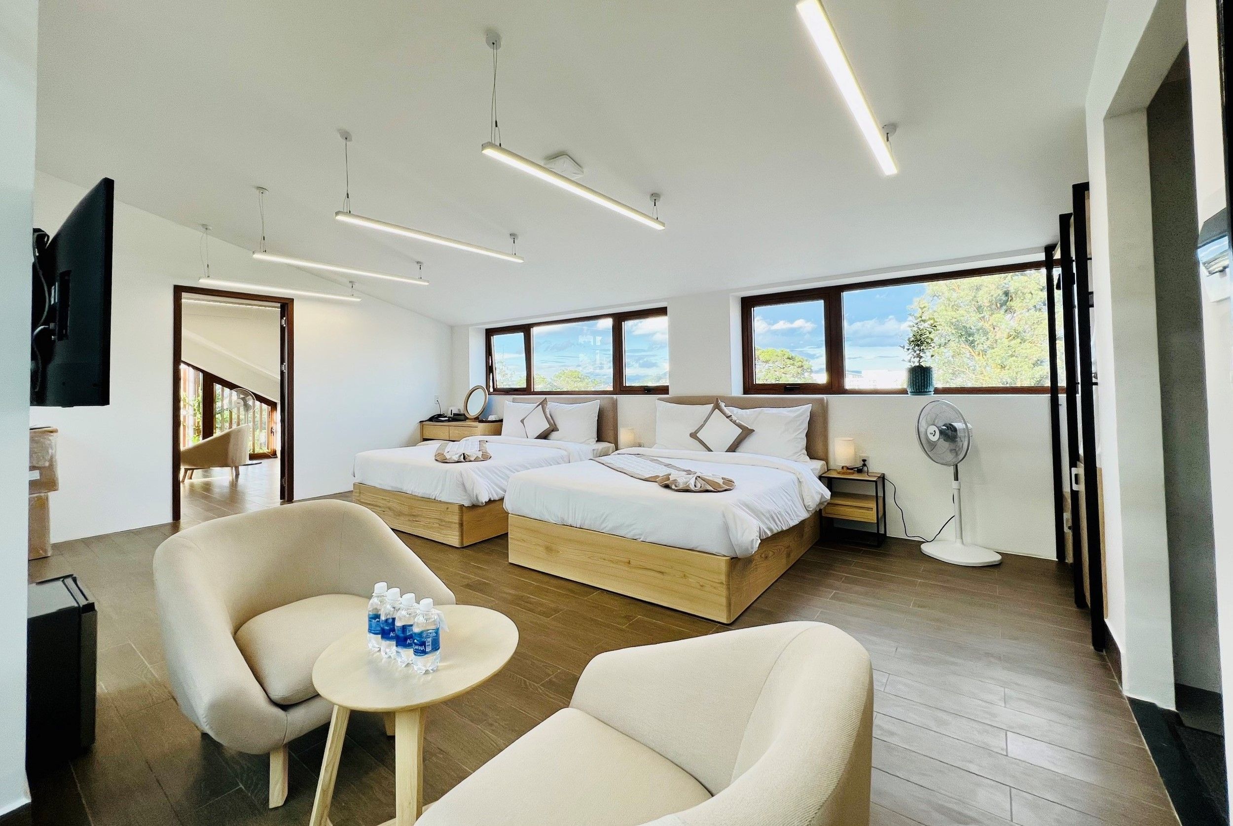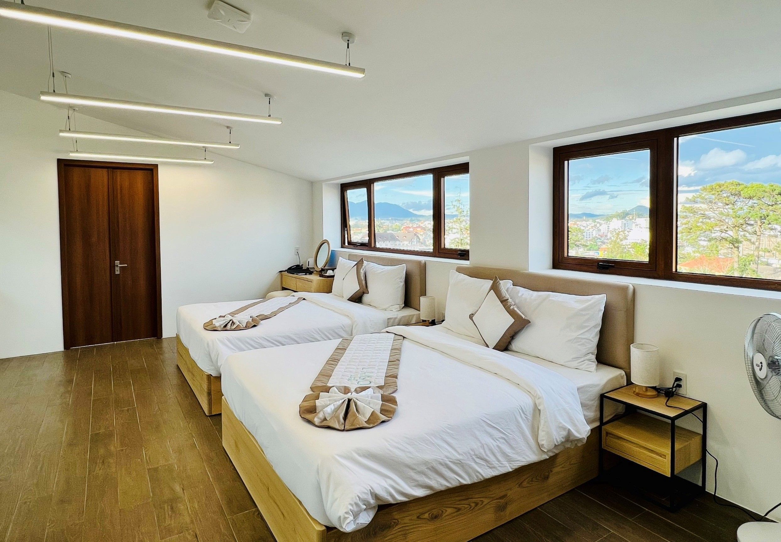 Phòng với 3 giường đôi lớn, có view đẹp, tầm nhìn trên cao và cực kỳ thoáng mát.