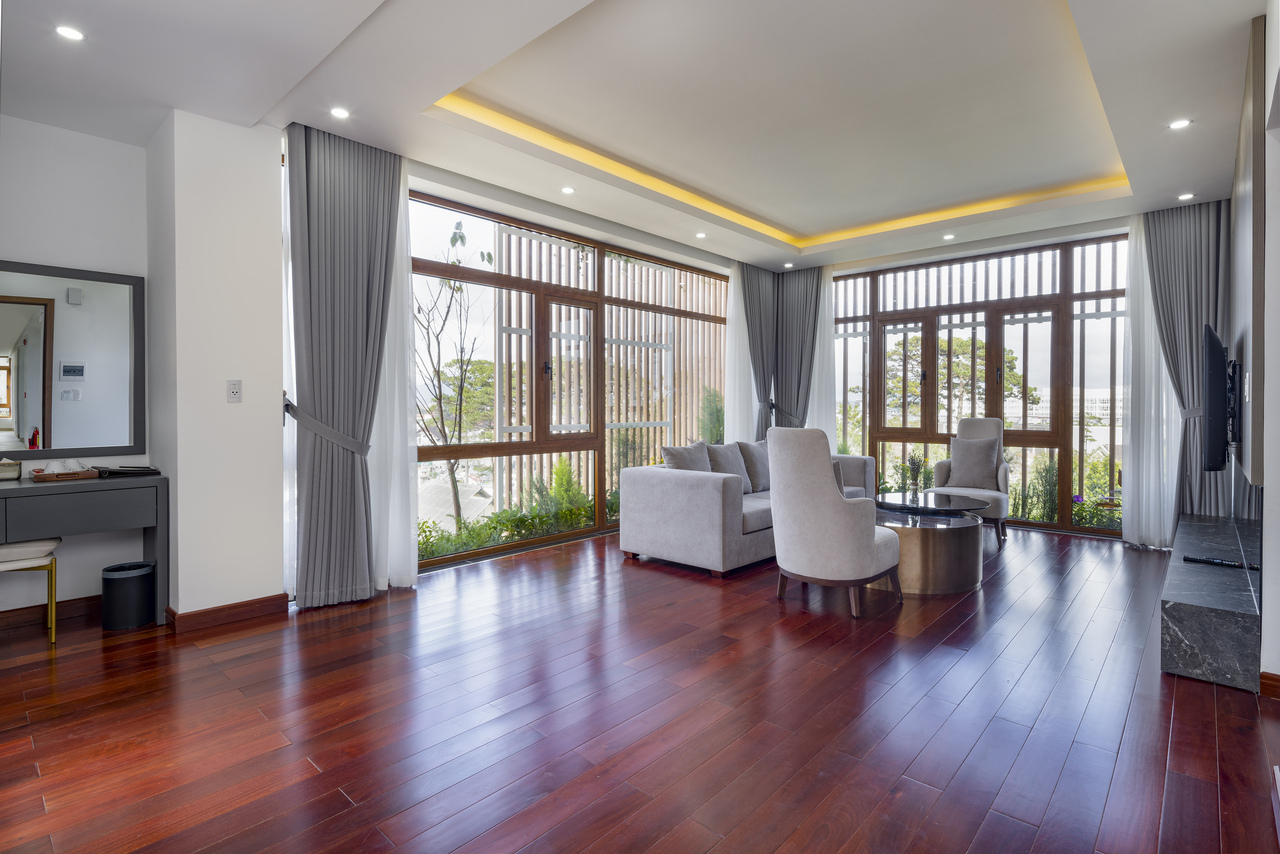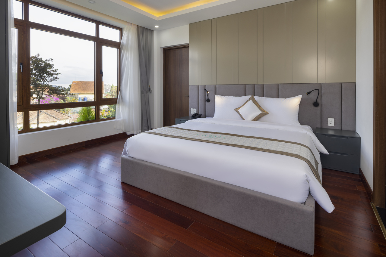 Phòng giường đôi lớn, có view đẹp và cực kỳ thoáng mát.